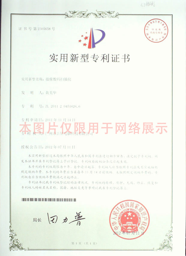 實用新型證書--攝像數碼掃描儀