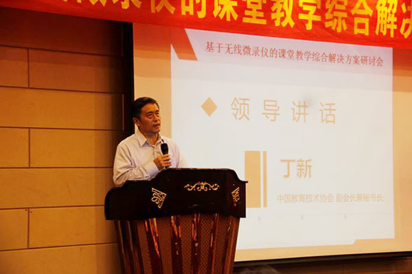 中央電教館副館長(zhǎng)丁新為研討會(huì)做主旨演講“企業(yè)為中國(guó)教育進(jìn)步提供技術(shù)支撐,微課制作是現(xiàn)階段教育改革的重要抓手,新技術(shù)要先用起來(lái),才能進(jìn)一步的推進(jìn)教育模式改革”。