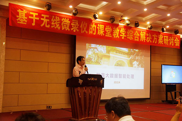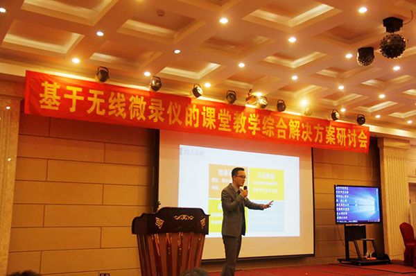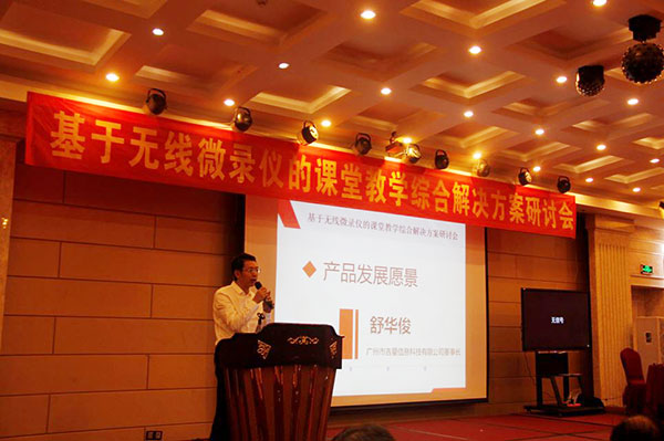 關(guān)于“基于無(wú)線微錄儀的課堂教學(xué)應(yīng)用綜合解決方案”由廣州吉星總經(jīng)理舒華俊向大會(huì)做了產(chǎn)品發(fā)展愿景的報(bào)告