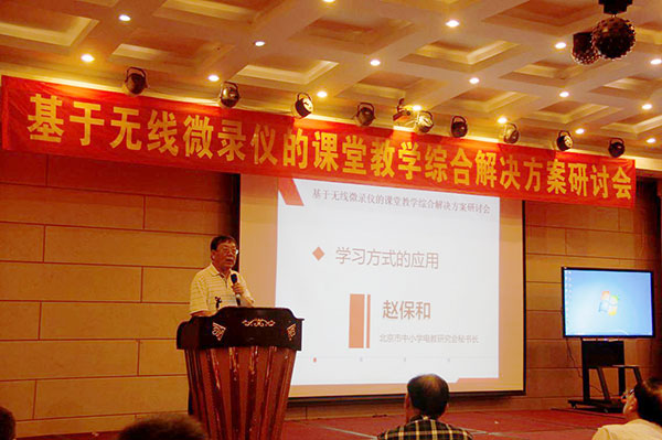 基于吉星幾百臺(tái)套無(wú)線微錄儀在北京各中小學(xué)的應(yīng)用實(shí)踐,北京市中小學(xué)研究會(huì)秘書長(zhǎng)趙保和向大會(huì)分享了吉星無(wú)線微錄儀的應(yīng)用成果。
