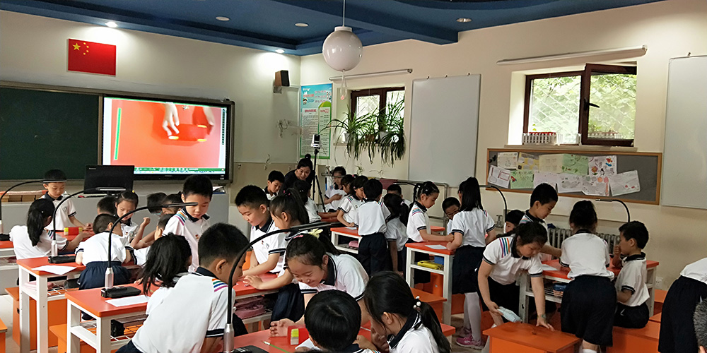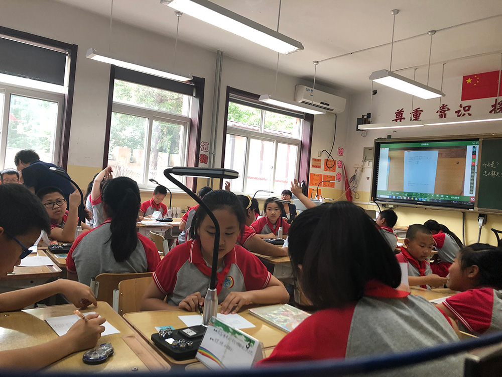 在智能互動終端及智慧課堂系統(tǒng)的幫助下,每個小組在大屏展示了自己的作品并如何將石頭快速的移開的過程共享給全班,小組之間進(jìn)行互動學(xué)習(xí),大大提高了課堂的互動氛圍。同學(xué)們深刻體會到科技的發(fā)展給人類的生活帶來了非同凡響的影響!