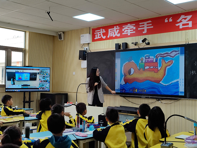 另外,系統(tǒng)還支持對(duì)比展示的功能。通過配備的學(xué)生直播機(jī),兩地學(xué)生能夠?qū)崿F(xiàn)有效互動(dòng)。