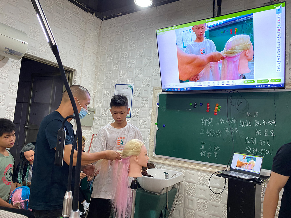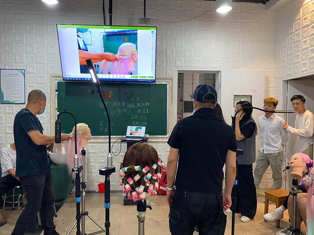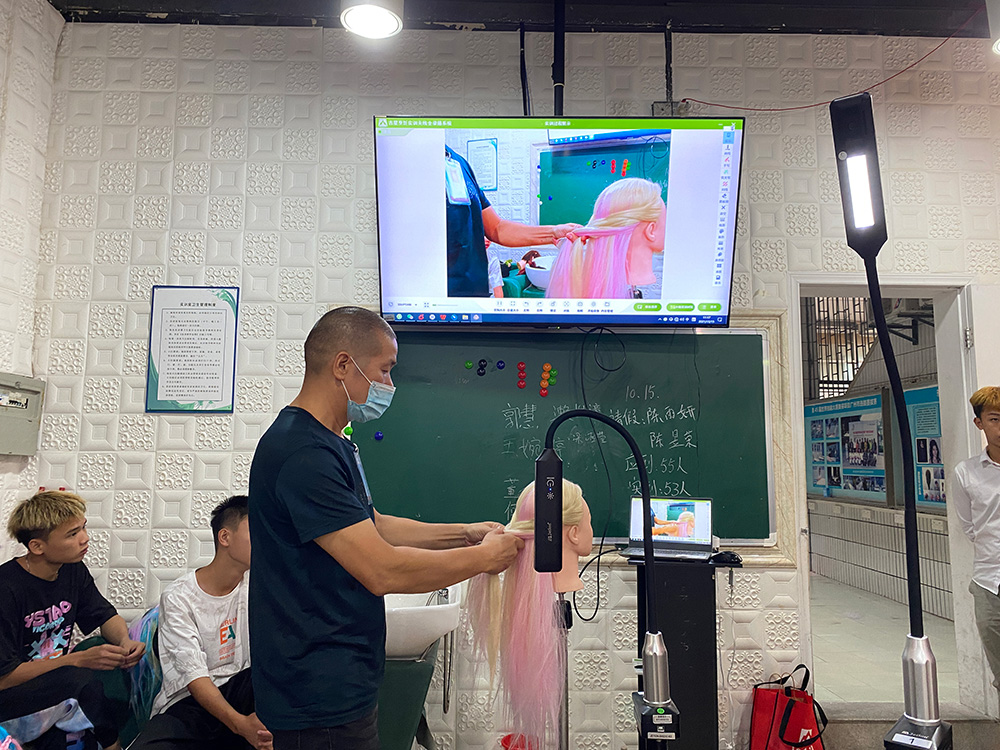 通過無線終端,可以拍攝不同幅面的教師美發美容操作并投放至大屏,無論是對頭發的細微操作,還是整個頭發造型的設計,都能清晰展示,讓學生能夠更快速掌握美發技能。