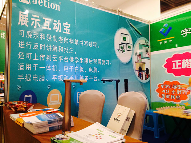 展會(huì)上吉星無(wú)線展臺(tái)用于硬筆書(shū)法培訓(xùn)項(xiàng)目展示