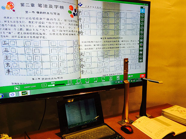 “吉星展示互動(dòng)書(shū)法教學(xué)方案”可用于毛筆書(shū)法課、硬筆書(shū)法課。在書(shū)法課上,老師在無(wú)線展臺(tái)下進(jìn)行書(shū)寫(xiě)過(guò)程展示,清晰地向?qū)W生示范書(shū)寫(xiě)要點(diǎn),同學(xué)們通過(guò)大屏顯示設(shè)備可以清晰看到老師的筆鋒、走向和字體結(jié)構(gòu)。老師可以隨時(shí)將展臺(tái)移動(dòng)到學(xué)生課桌,或直接調(diào)用學(xué)生課桌上的展臺(tái)畫(huà)面,展示學(xué)生的書(shū)寫(xiě)過(guò)程和書(shū)法作品,用對(duì)比教學(xué)功能進(jìn)行分屏對(duì)比,用白板功能及時(shí)講解和批注,增強(qiáng)教學(xué)互動(dòng)性。這個(gè)方案稍作變動(dòng)就可以成為適用于美術(shù)繪畫(huà)課的“展示互動(dòng)繪畫(huà)/手工教學(xué)解決方案” 。