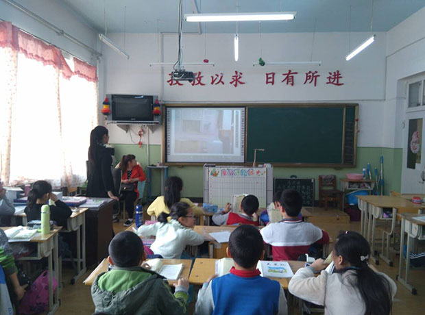 陳老師是二年一班的班主任及語文老師,教學不單單是教會學生們書本里的知識,課外閱讀、新聞時事都是非常重要的課題。讀報不再是傳閱,或者人手一份的閱讀模式。吉星無線展臺輕松把報紙里的圖文同步顯示在大白板里。讓全班同學一起看,一起讀,一起討論。高效的閱讀方式深的同學們喜愛。