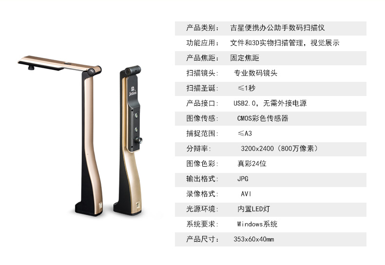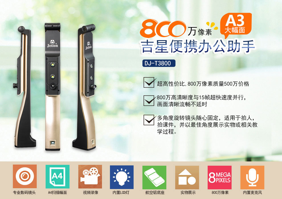 吉星便攜辦公助手800萬超高清,A3大幅面高拍儀 DJ-T3800
