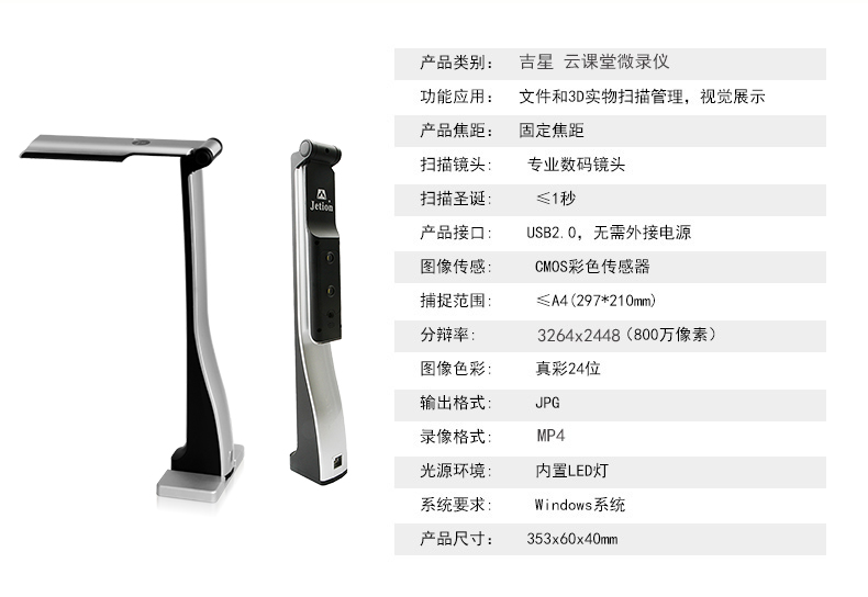 機械折臂270度翻轉式:90度可拍攝文稿;180度可拍攝課堂活動,用作簡易的錄播系統;270度可錄制微課