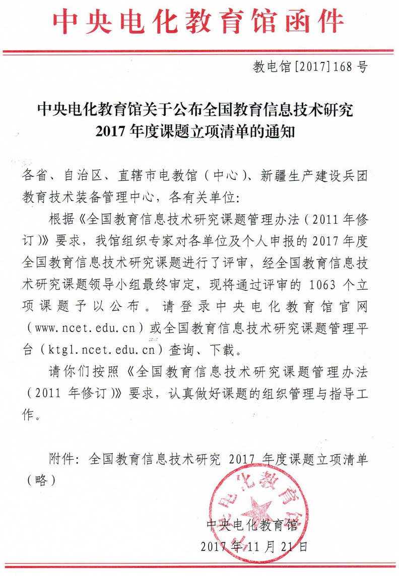 答:本課題屬于中央電化教育館全國教育信息技術(shù)研究2017年度重點(diǎn)課題。